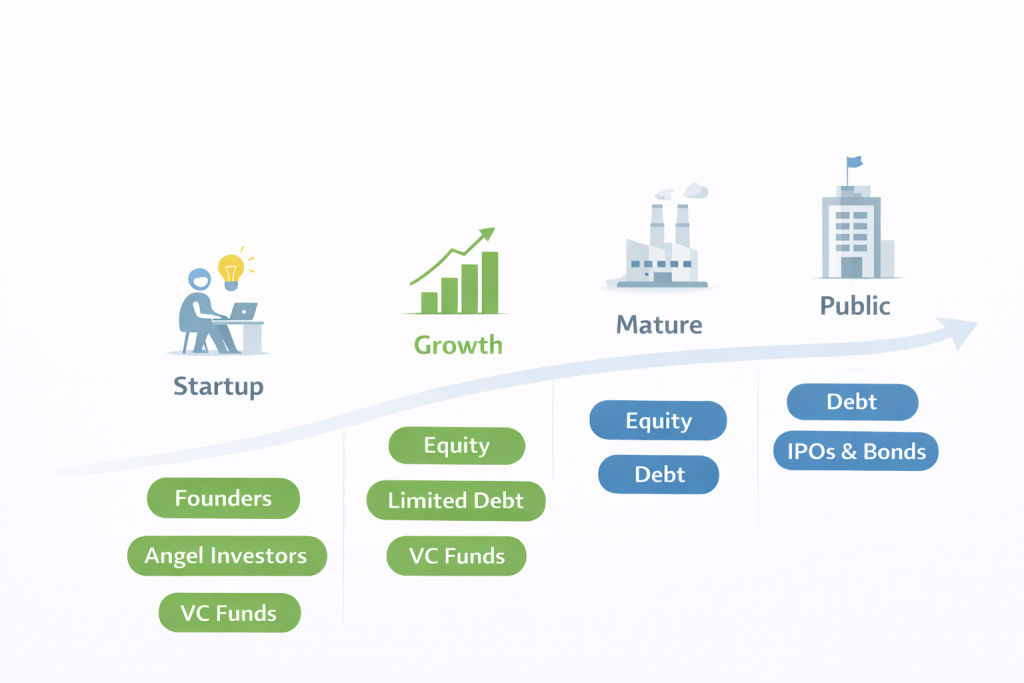 This stage-based logic is central to equity vs debt decisions.
