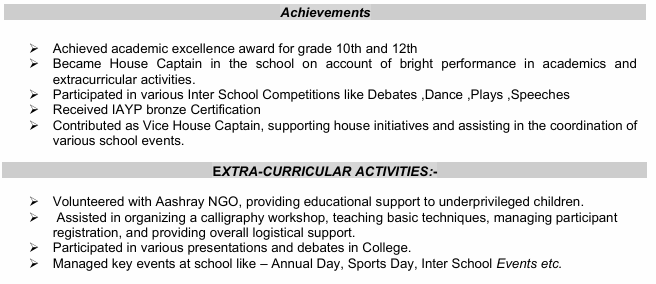 | Achievements | Duties instead of outcomes | Highlight measurable achievements | Shows contribution |