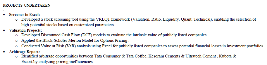 Figure 6: Real student finance resume example showing certification knowledge applied through projects, not just listed.