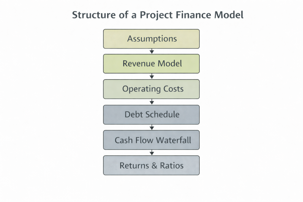 Because of this structure, project finance modelling is heavily focused on timing, cash flow stability and downside protection rather than accounting profits.