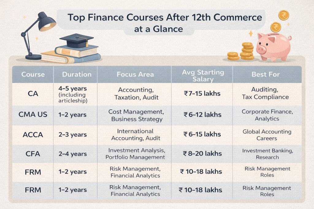 The best finance course after 12 commerce depends on your goal. CA is strong in India, while CFA and ACCA offer better global opportunities.