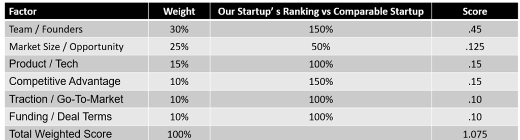 These include the strength of the idea, the quality of the founding team, whether a prototype exists, early signs of traction, and how close the startup is to launching properly. Each of these areas adds a fixed amount of value, and when you put them together, you get a rough but reasonable valuation.